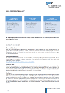 KE Elektronik garantiert einen verantwortungsvollen Umgang mit seinen Interessensgruppen und verpflichtet sich zur Einhaltung von Gesetzen und behördlichen Vorgaben.